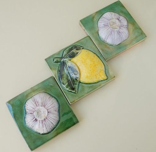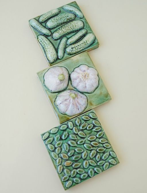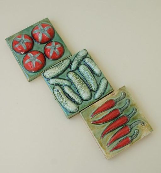 Минимальный заказ: 13 шт. одного или нескольких видов из коллекции "Дивный урожай". На каждом изразце изображен определенный овощ или фрукт.