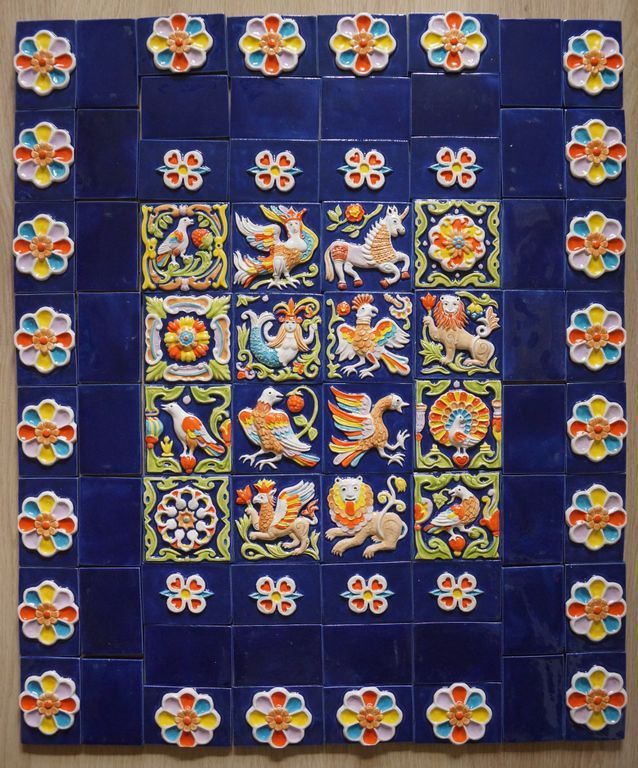 Изразцовое цветное панно "Древние цветы".. Цена указана за готовое изделие. В состав входят: