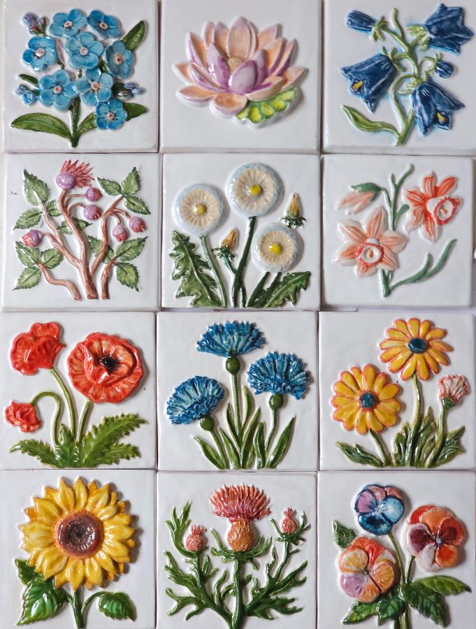 Керамическая плитка из серии "Изразцовая Весна". Цена указана за один кв. метр готового изделия. Размер каждой изразцовой плитки 10см на 10см. Толщина: 0,9-1,2см. В 1 кв.м. - 100 шт. Всего 12 видов. Минимальный заказ: 24 шт. одного или нескольких видов из коллекции "Изразцовая Весна".