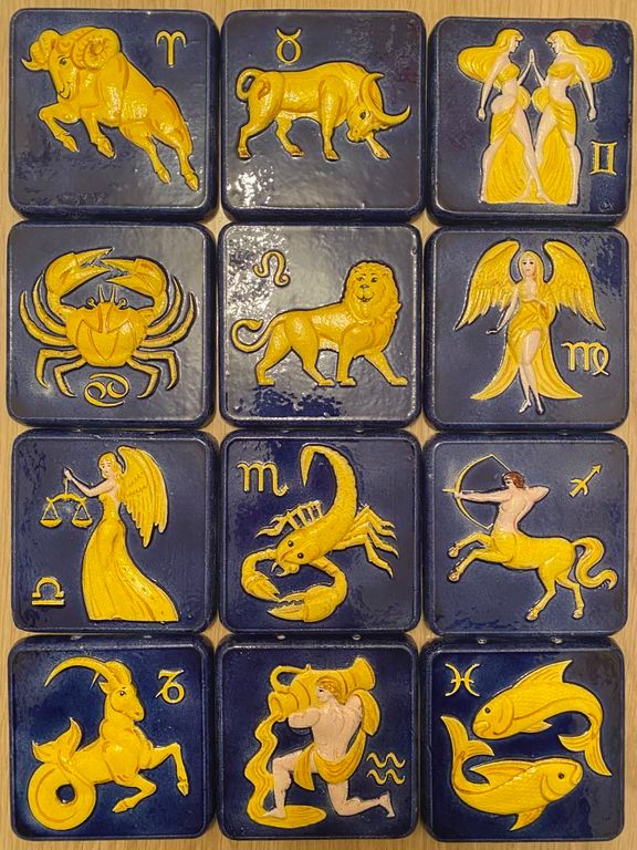 Минимальный заказ: 12 шт. одного или нескольких видов из коллекции "Знаки зодиака". На каждом изразце изображен один из знаков зодиака.